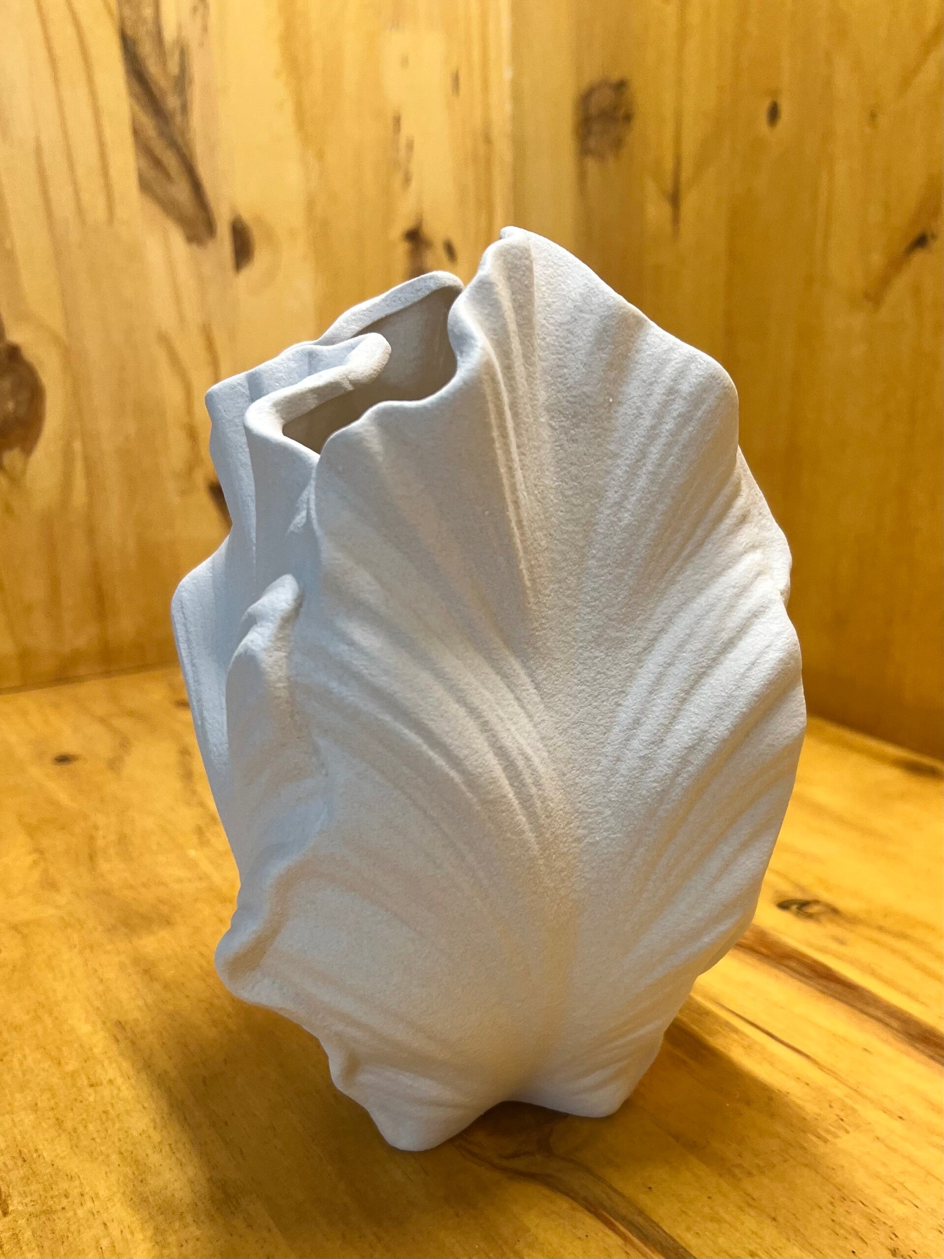 Vase en céramique blanc ovale, de style bohémien avec son design de feuille texturé