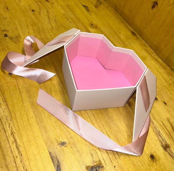 Boîtes cadeaux en carton rigide, en forme de cœur rose à double porte, idéale pour une composition fleurie pleine de tendresse